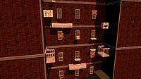 Over the past week: Created security camera, fire escape platforms, fire escape ladder, apartment building pieces x3, apartment window, lamp, window awning & window shutter models...
